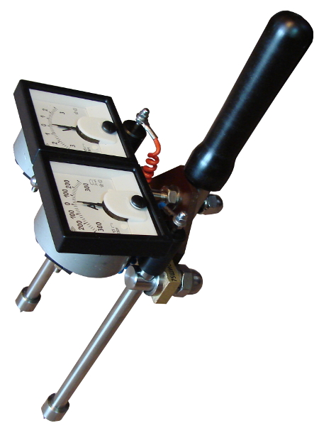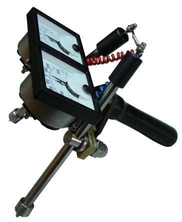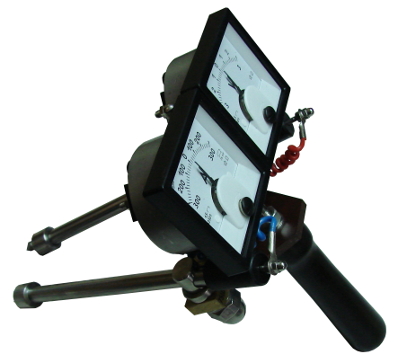 1.Блок приборов включает вольтметр и амперметр. Блок приборов может поворачиваться относительно оси на 90 градусов – для обеспечения удобства работы в труднодоступных местах